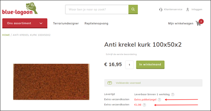 Sommige producten kunnen niet met de reguliere pakketpost verzonden worden. Voor deze artikelen gelden extra kosten.