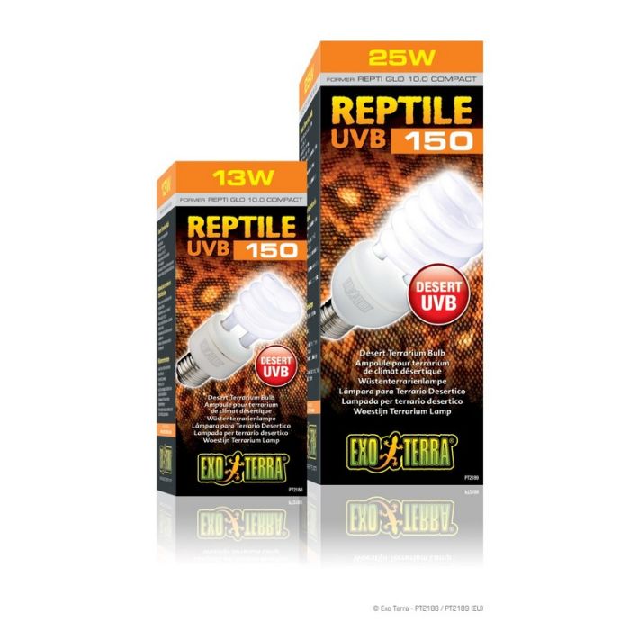 De Exo Terra Reptile UVB150 heeft een zeer hoge UVB opbrengst, te vergelijken met het zonlicht in woestijngebieden. Deze plaatsen ontvangen meer direct zonlicht, waardoor woestijnreptielen blootgesteld worden aan meer UV straling dan alle andere reptielen. De lamp is tevens geschikt om voldoende UVB penetratie te voorzien bij terrariums met fijn verluchtingsgaas. Fijn verluchtingsgaas kan tot 50% van de UV stralen wegfilteren. De hoge Vitamine D3 Yield Index verzekert de vitamine D3 fotosynthese die de absorptie van calcium ondersteunt en metabolische ziekten voorkomt.