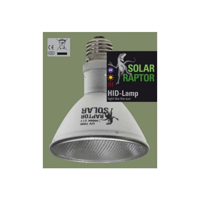 - Alleen gebruiken met daarbij behorende ballast. - De Solar Raptor dient verticaal geinstaleerd te worden, zodat de lamp recht naar benden schijnt. Dit bevorderd de levensduur van de lamp. - De Solar Raptor is niet bestemd voor terrariums met water. - Door de fabrikant word aangeraden om de lamp jaarlijks te vervangen, voor een nieuwe Solar Raptor UVB HID lamp